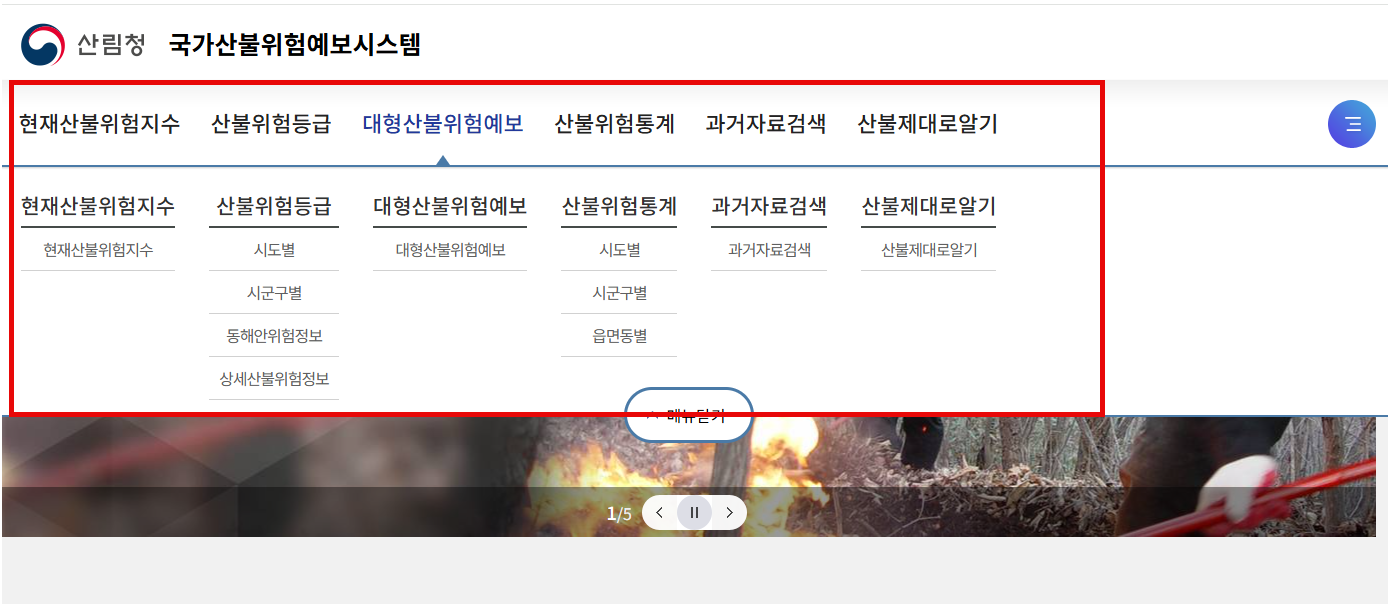 | 산불예방정보시스템 | 산불 발생 지역 및 현황 지도 | 접속 |