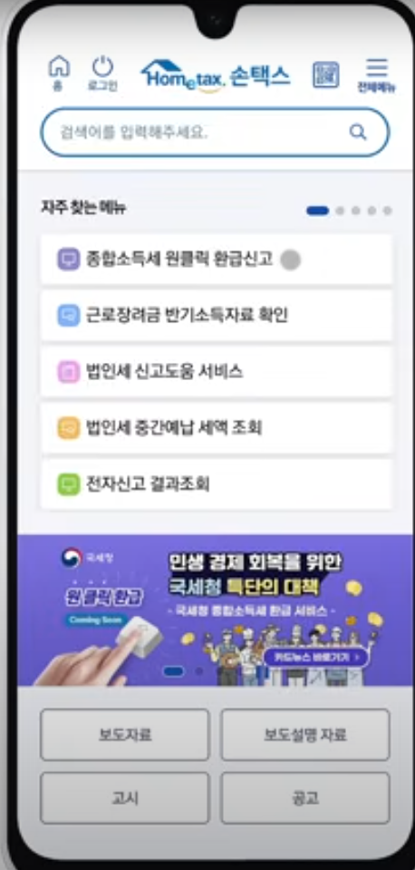 서비스는 정말 간단하게 구성되어 있어요. 핸드폰이나 PC에서 홈택스에 접속한 뒤, '원클릭 환급 신고' 버튼을 누르고 간편인증만 하면 끝! 로그인 후엔 국세청이 미리 계산해둔 환급 금액을 확인할 수 있고, 수정 사항이 없다면 '이대로 신고하기'를 누르면 자동 신청 완료입니다.