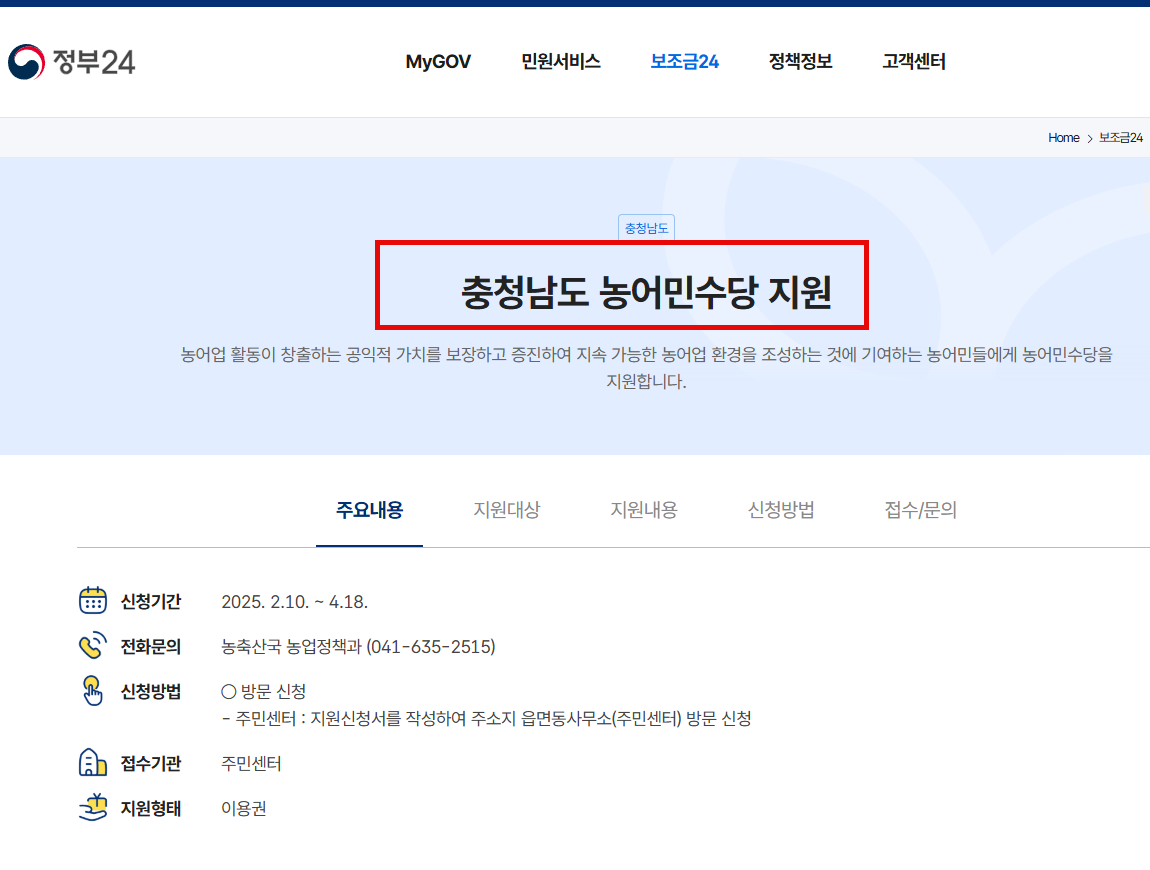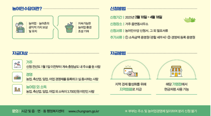 ⏳ 2025 충청남도 농어민수당 신청 기간